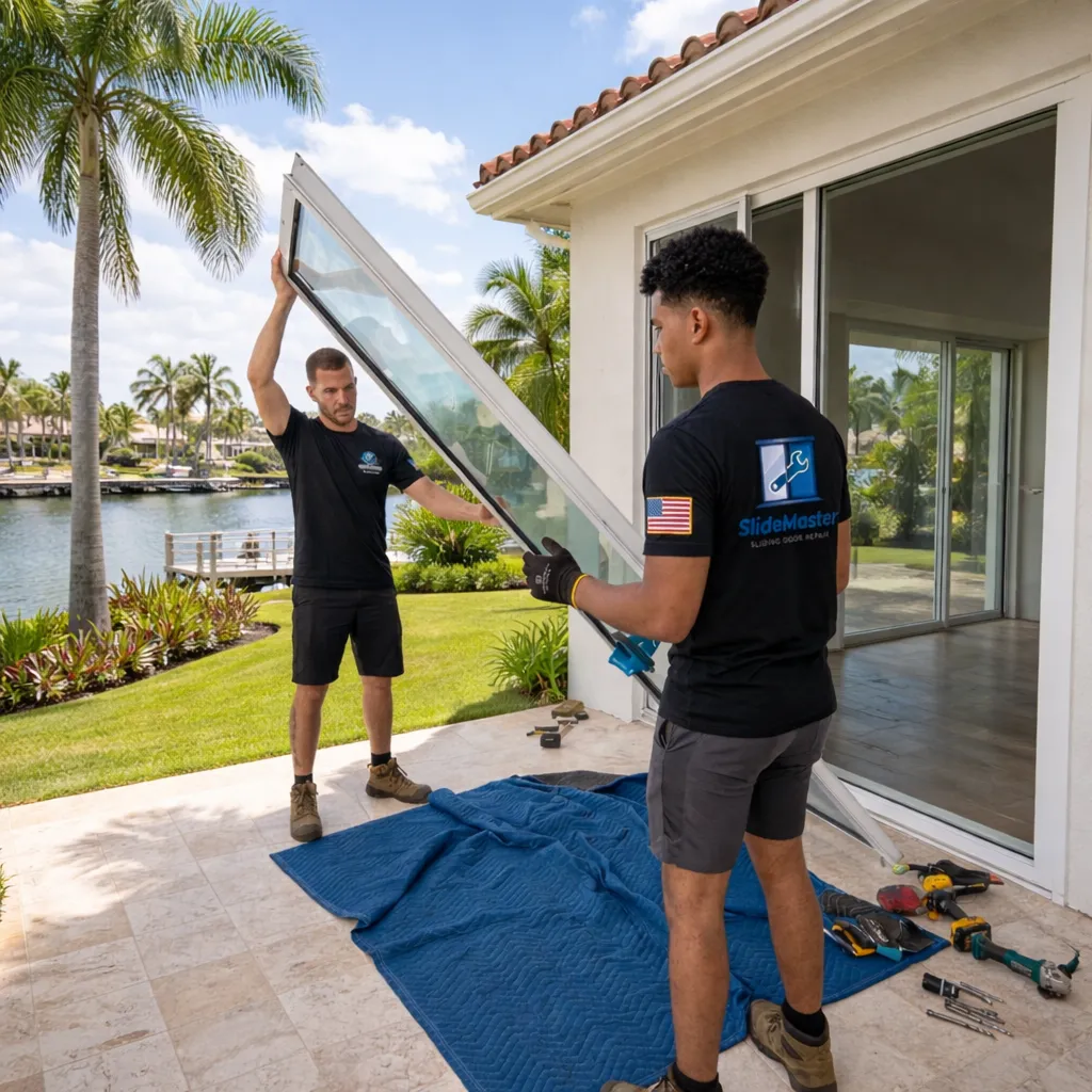 Cracked or damaged sliding door glass? SlideMaster provides professional glass replacement services across Florida, specializing in patio and sliding door panels for a safe, durable, and clean finish. Reach out today to restore your doors.
